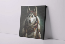 This exquisite piece of art portrays a Siberian Husky, a breed celebrated for its strength and deep connection with the frigid expanses of Siberia. Adorned in traditional attire that reflects the rich cultural heritage of the Siberian Eskimo people, this noble canine is presented in an attire resonating with history.