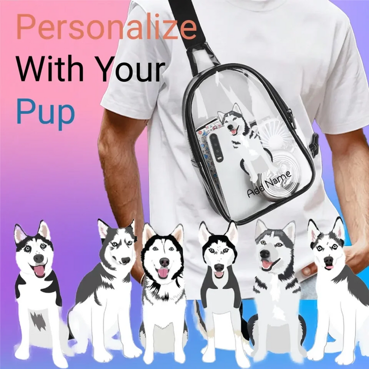 Our Personalized Husky Love Unisex Transparent Sling Bag is a must-have for every Husky enthusiast. Customize it with your pup's likeness and their name, capturing their true coat color.