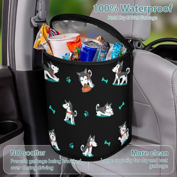 Get ready to organize your car in the most playful and stylish way with our Playful Black and White Huskies Multipurpose Car Storage Bag!