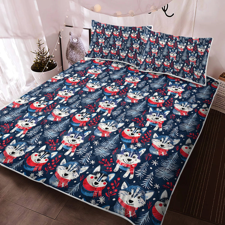Midnight Merriment Husky Christmas Quilted Blanket or Bedding Set
