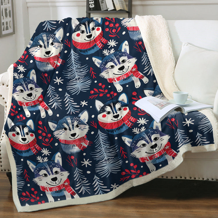 Midnight Merriment Husky Christmas Soft Warm Fleece Blanket