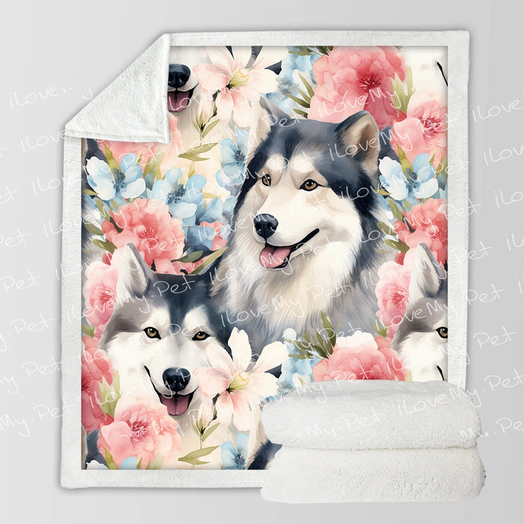 Designed with both Huskies and people in mind, this blanket offers a stunning watercolor painting that captures the majestic beauty of a Siberian Husky amidst vibrant flowers. This artistic portrayal evokes feelings of harmony and tranquility, perfectly mirroring the gentle yet spirited nature of the breed.