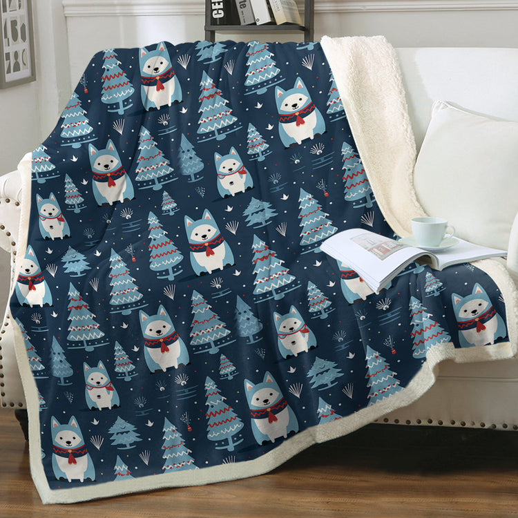 Winter Wonderland Husky Christmas Soft Warm Fleece Blanket