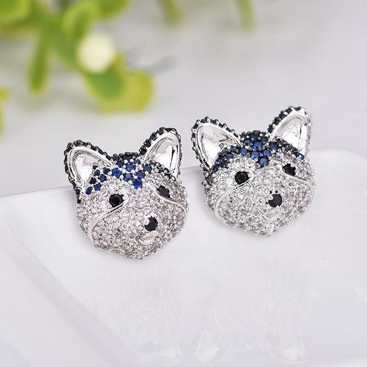 Siberian Husky Earrings - 925 Silver - Studded Siberian Husky Love