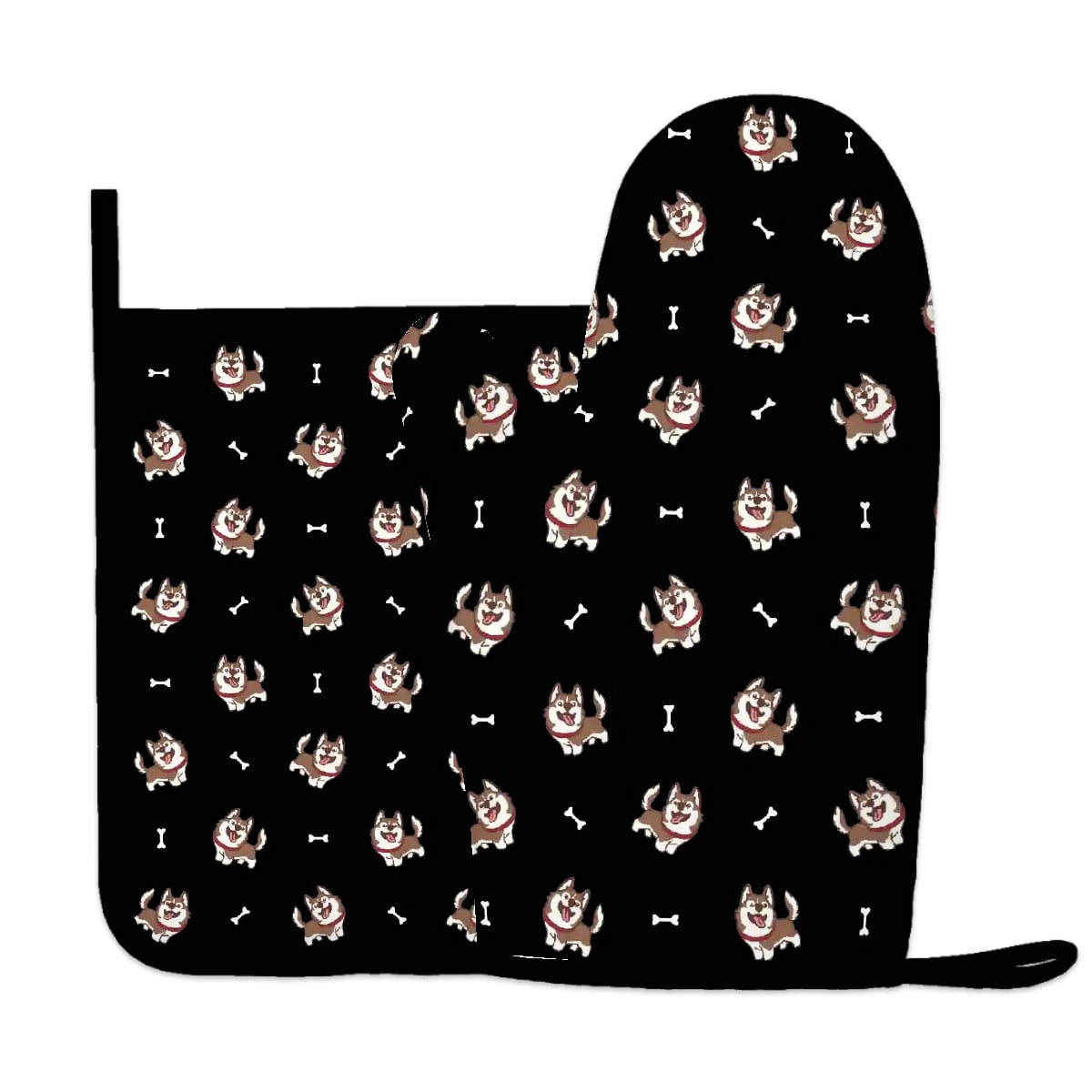 Brown Husky Love Oven Mitts and Pot Holder Set
