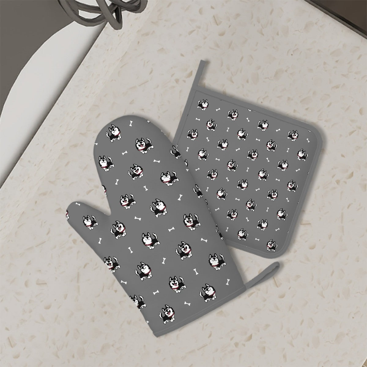 Cheerful Husky Love Oven Mitts and Pot Holder Set-Kitchen Decor-Accessories,Dog Mom Gifts,Siberian Husky-8