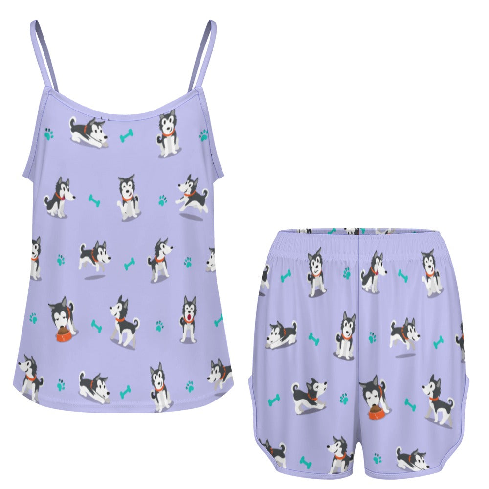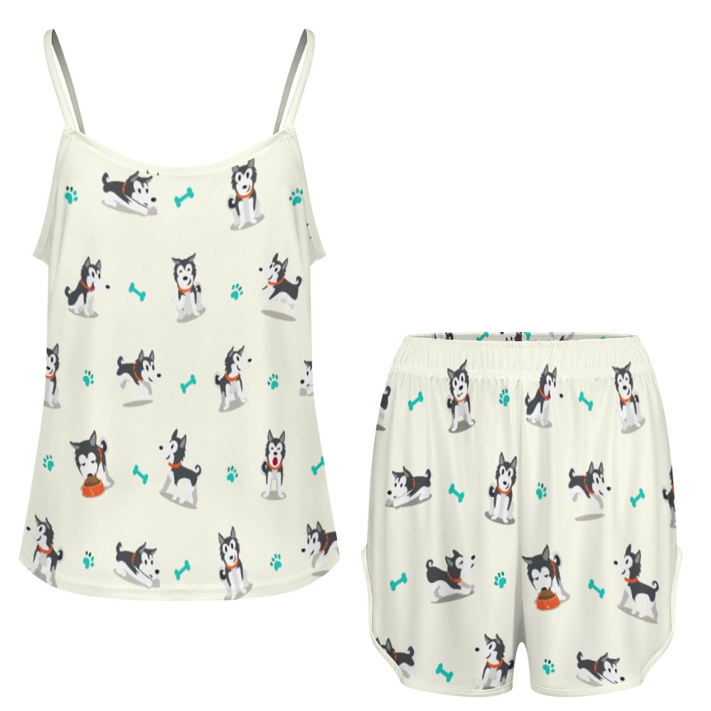 Cutest Black and White Husky Women's Cami and Shorts Pajama Set-1