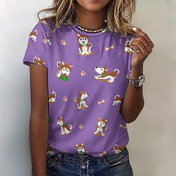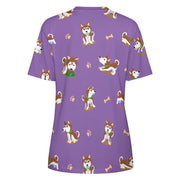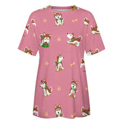 Cutest Red Husky Love All Over Print Women's Cotton T-Shirt - 4 Colors