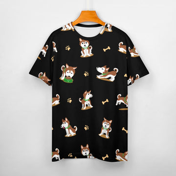 Designed with both Red Huskies and people in mind, this shirt captures the essence of the breed's vivacious spirit. The tee features the Red Huskies joyfully going about their day, accented with playful paw and bone highlights. It's a celebration of the unique characteristics that make Red Huskies so endearing — their energy, playfulness, and sociable nature.