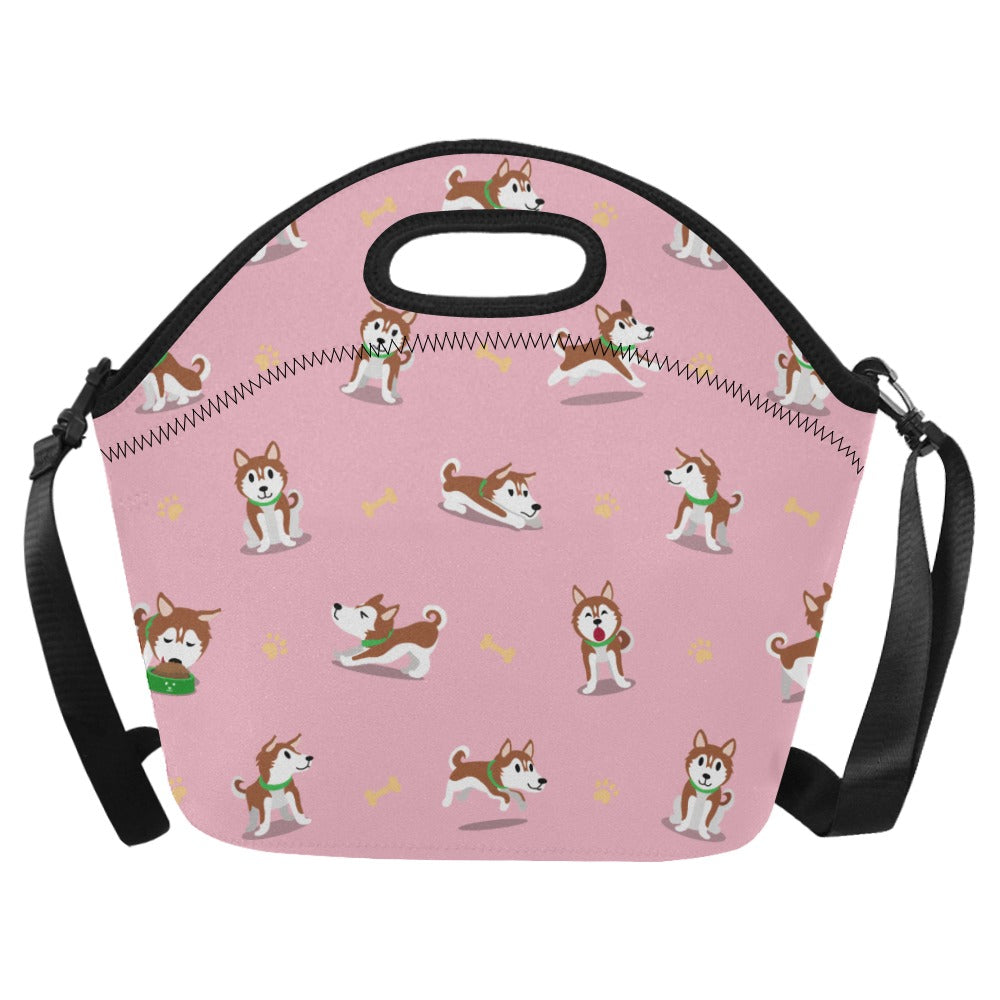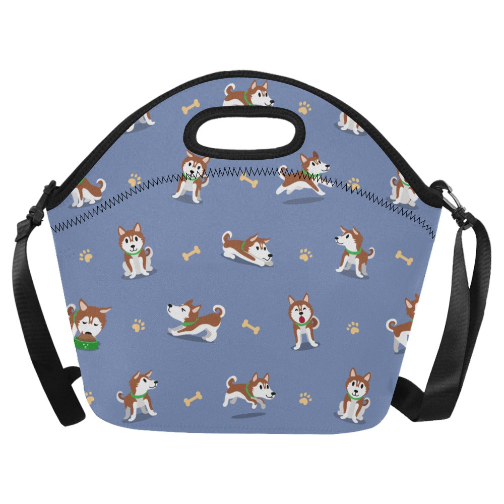 Playful Red Husky Adventures Neoprene Lunch Bag