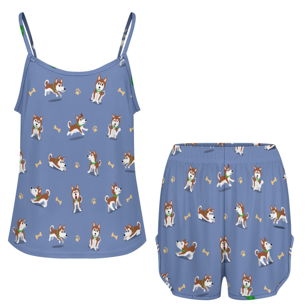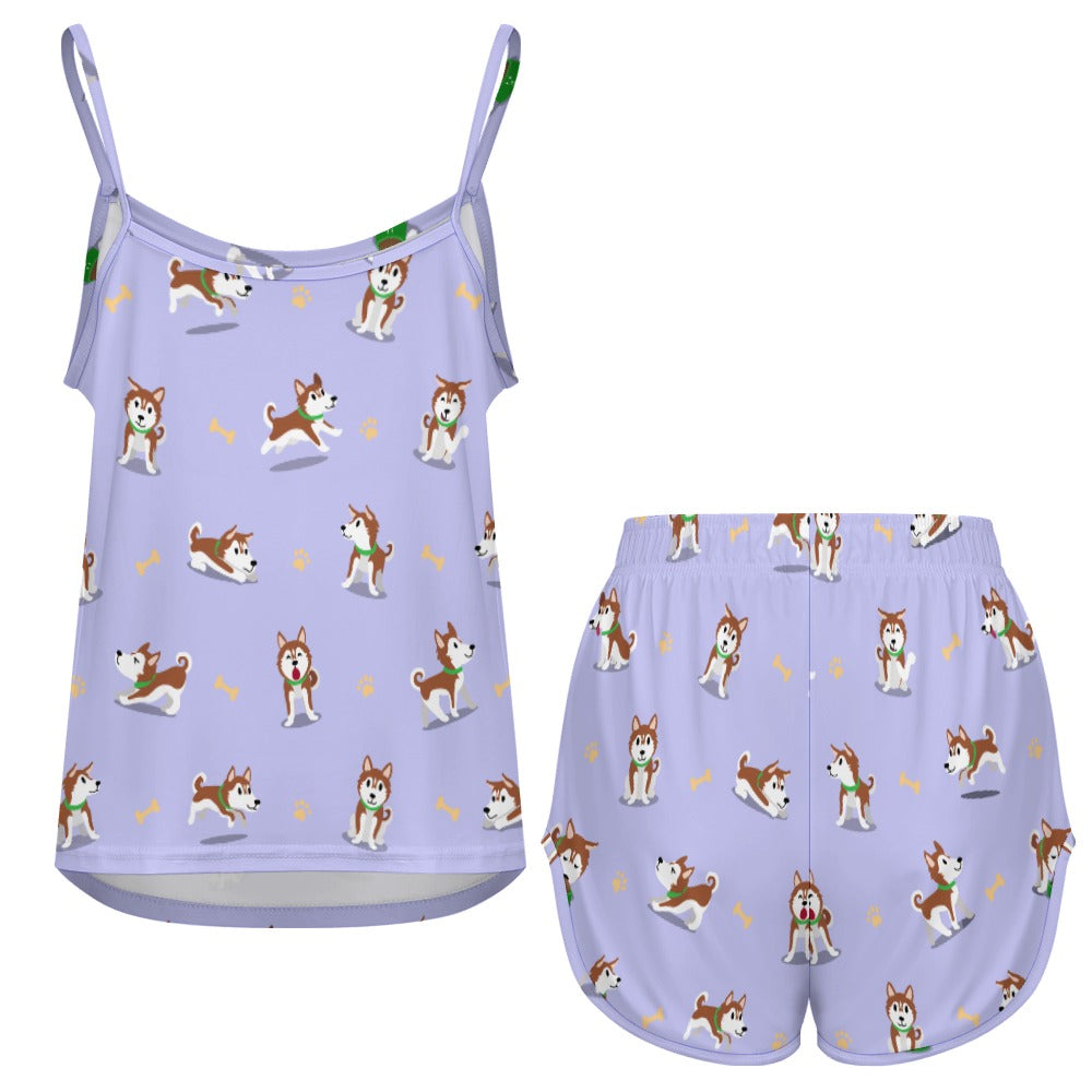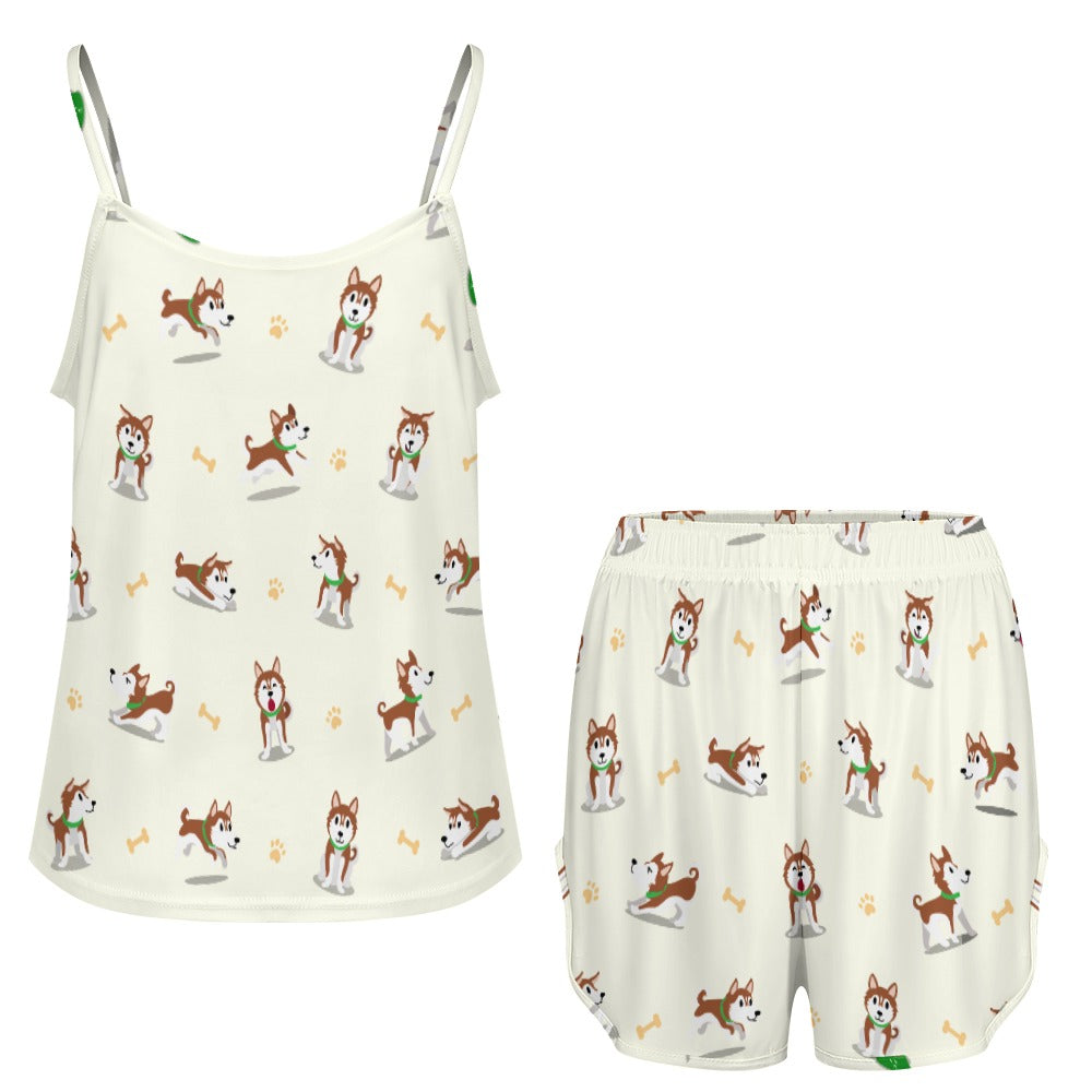 Playful Red Husky Adventures Women's Cami and Shorts Pajama Set