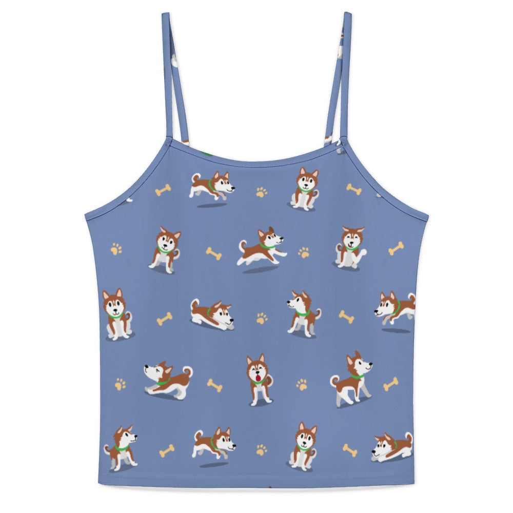 Embrace cozy nights with our Playful Red Husky Adventures Women's Cami and Shorts Pajama Set, designed for those who adore their furry friends. This delightful set features a lively pattern of cartoon Shiba Inus, each showcasing their playful spirit in various charming poses.