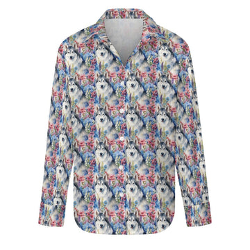 Watercolor Flower Garden Husky Women's Shirt - 2 Designs