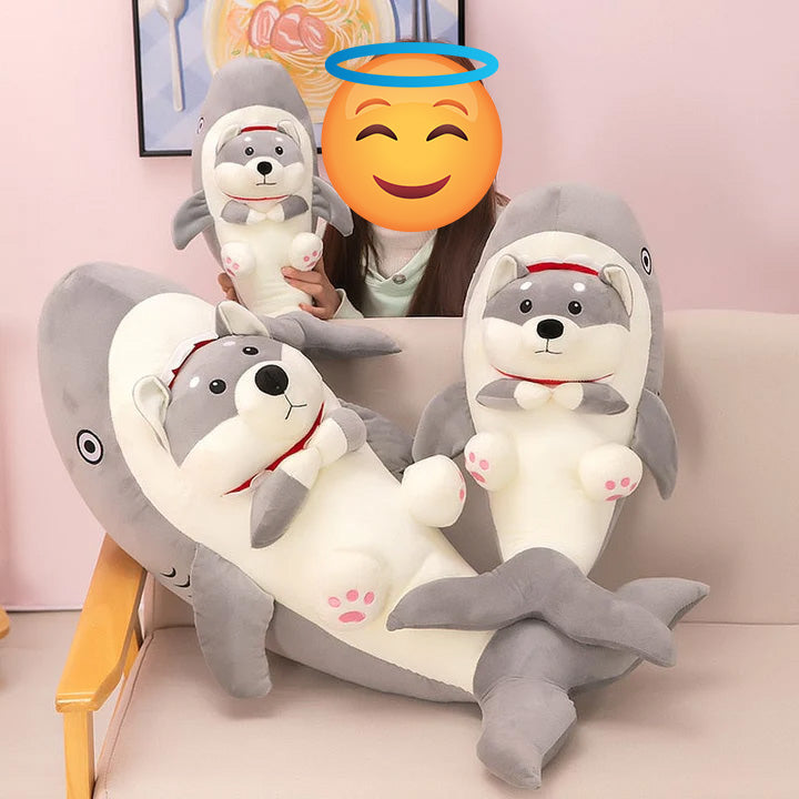 That's precisely the delightful blend you'll find in the "My Shark is a Husky Stuffed Animal Plush Toy Pillows". This whimsically designed Husky plush toy captures the essence of the breed's playful nature, with the Husky taking on the persona of the mighty shark. With that cute and innocent face peeking through, this is a Husky with a fun twist!
