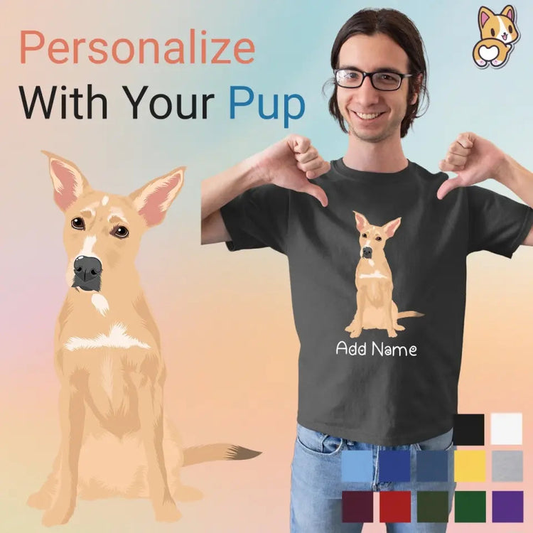 Personalize with your pup's name! Featuring the most adorable Indian Pariah Dog artwork, this t-shirt is perfect for any proud dog dad. Made from 100% cotton, it’s comfortable, breathable, and durable. Available in 12 colors and 7 sizes, it suits every style and fit preference.