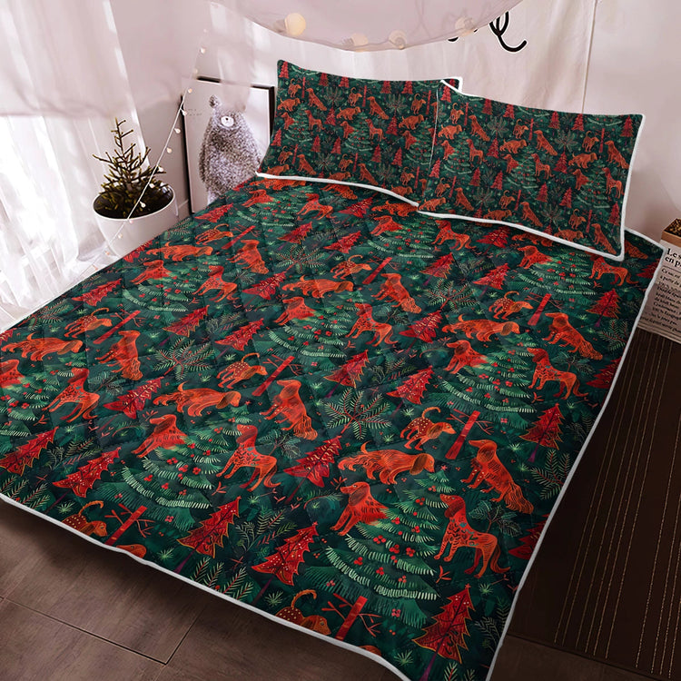 Wrap yourself in holiday warmth with our Holiday Hounds Irish Setter's Christmas Quilt Blanket Bedding Set.