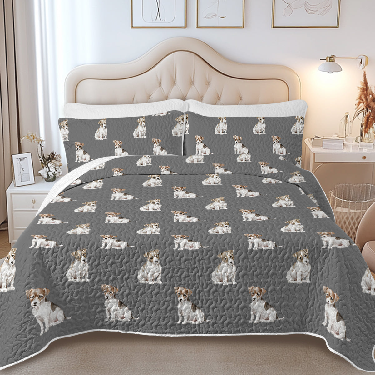 Watercolor Jack Russell Terrier Puppies Quilted Bedding Set
