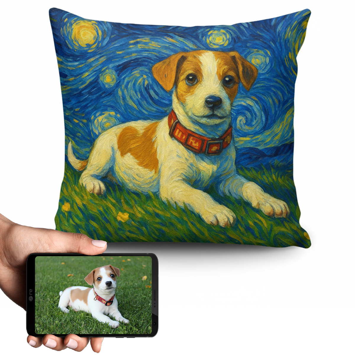 Transform your love for your Jack Russell Terrier into a stunning piece of art with our Personalized Starry Night Artwork Custom Pillowcase. This unique creation captures the essence of your furry friend in Van Gogh's iconic style, making it a heartfelt addition to your home.