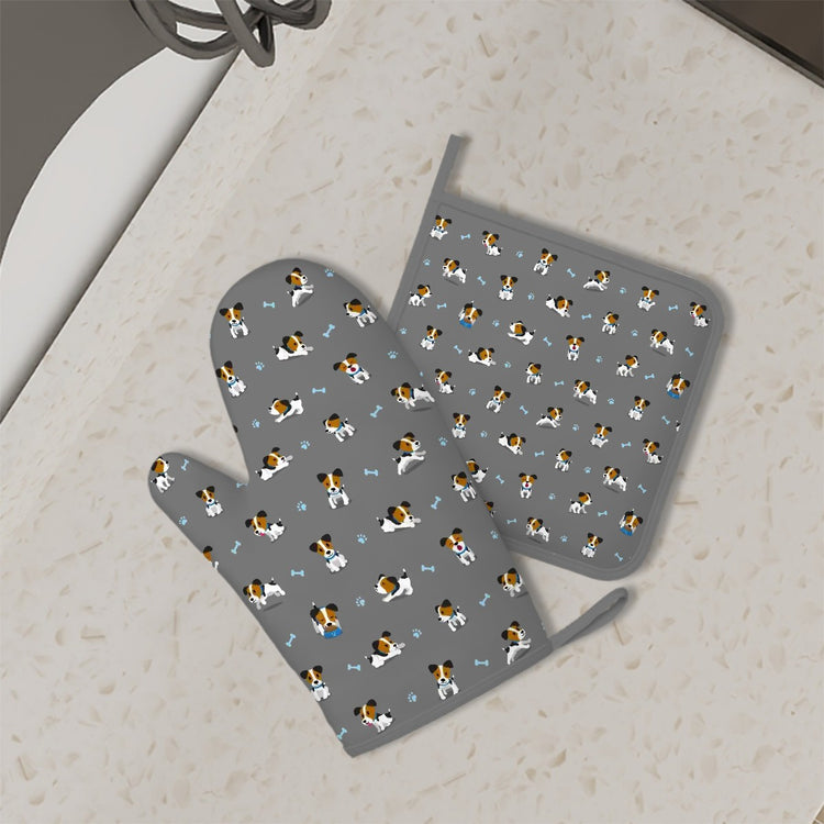Playful Jack Russell Terrier Moments Oven Mitts and Pot Holder Set