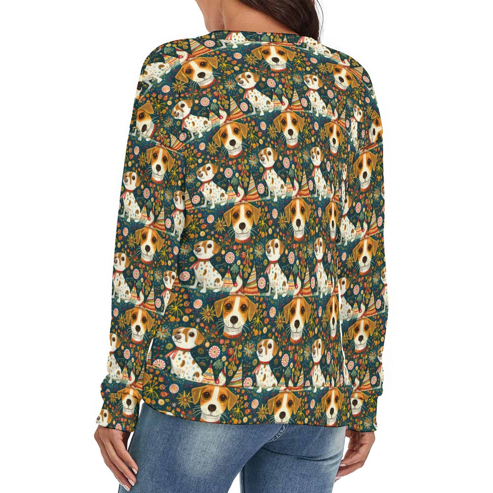 Celebrate the joy of the season with our Cheerful Jack Russell's Jamboree Women's V-Neck Christmas Sweater!
