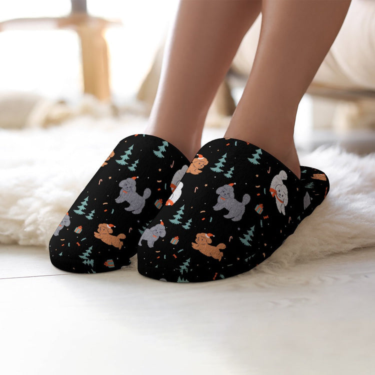 Festive Doodles in Christmas Cheer Women's Cotton Mop Slippers-37