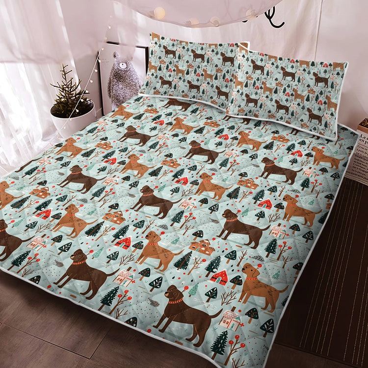 Wrap yourself in holiday warmth with the Chocolate Lab's Charming Christmas Quilt Blanket Bedding Set.