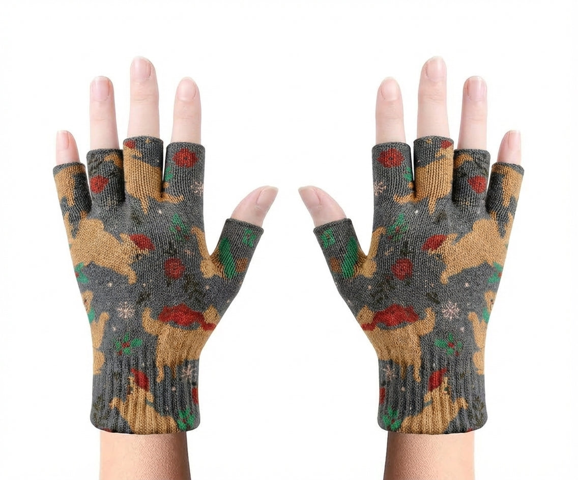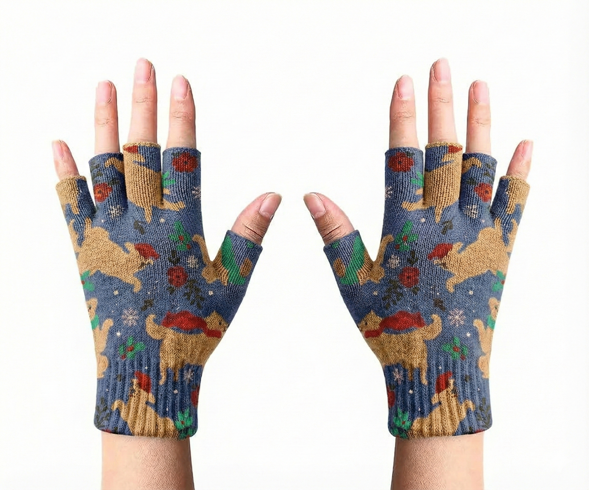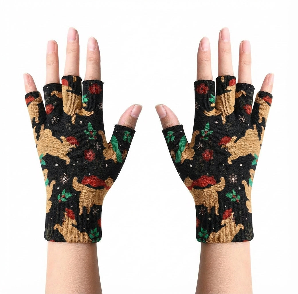 These gloves showcase a delightful design where Yellow Labradors are dressed up for festive celebrations. Perfect for using your smartphone without removing them, they blend functionality with style.