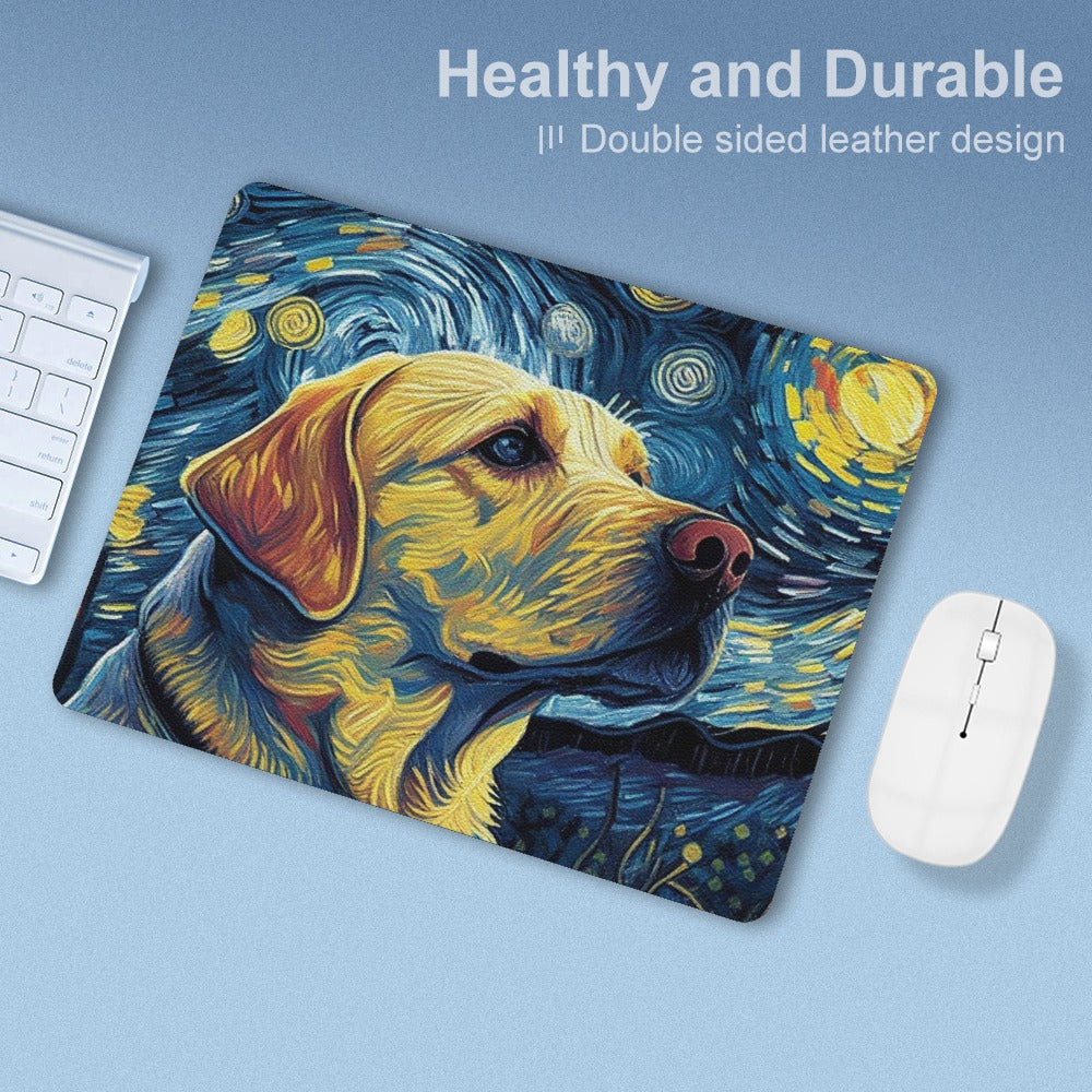 Experience the fusion of art and affection with our Starry Night Companion Yellow Labrador Leather Mouse Pad.