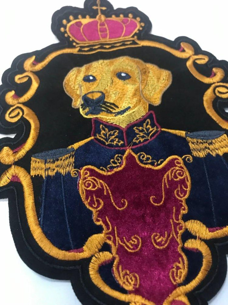 Measuring nearly 11" inches or 28 cm tall - featuring an exquisite embroidered crown Labrador design.