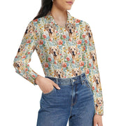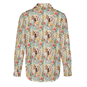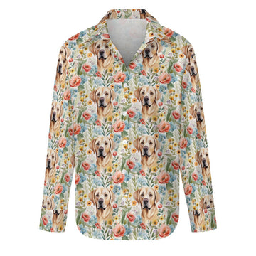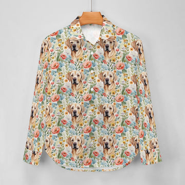 Embrace the joy of a loyal companion amidst nature's splendor with our Floral Blossoms and Yellow Labradors Women's Shirt.
