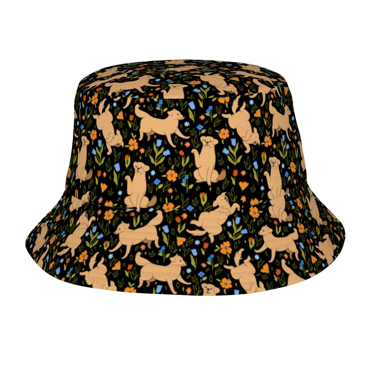 Flower Garden Yellow Labrador Bucket Hat-Hats & Caps-Accessories,Dog Dad Gifts,Dog Mom Gifts,Hats,Labrador-Midnight Black-One Size-41
