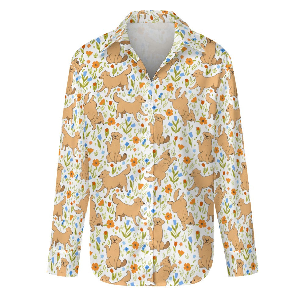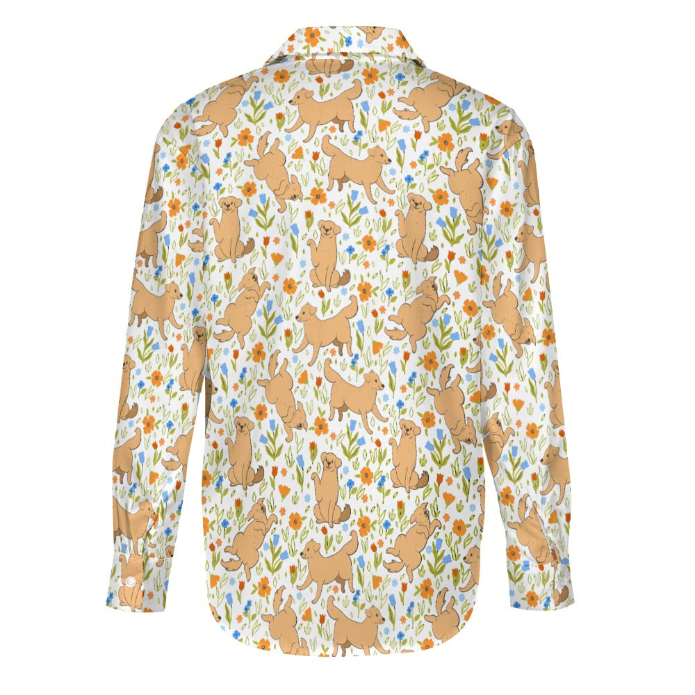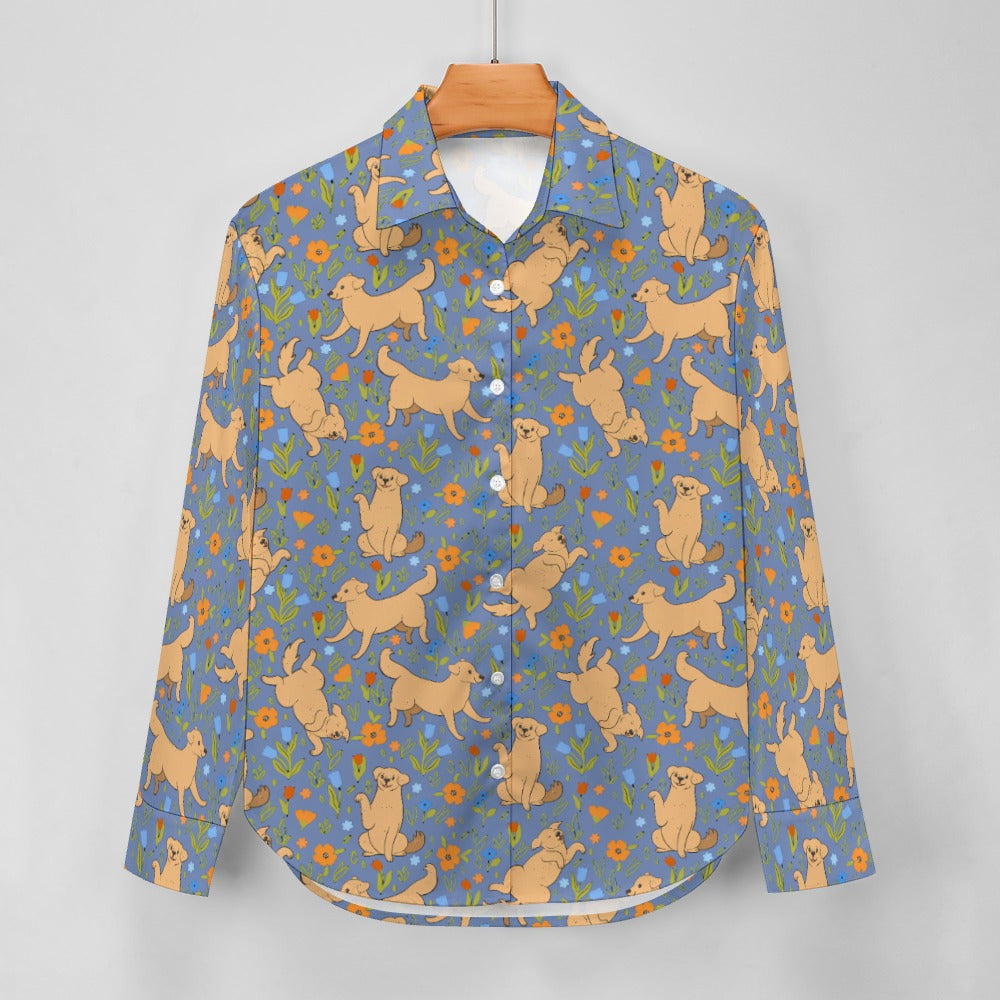 Flower Garden Yellow Labradors Women's Shirt-Apparel-Apparel,Dog Mom Gifts,Labrador,Shirt-1