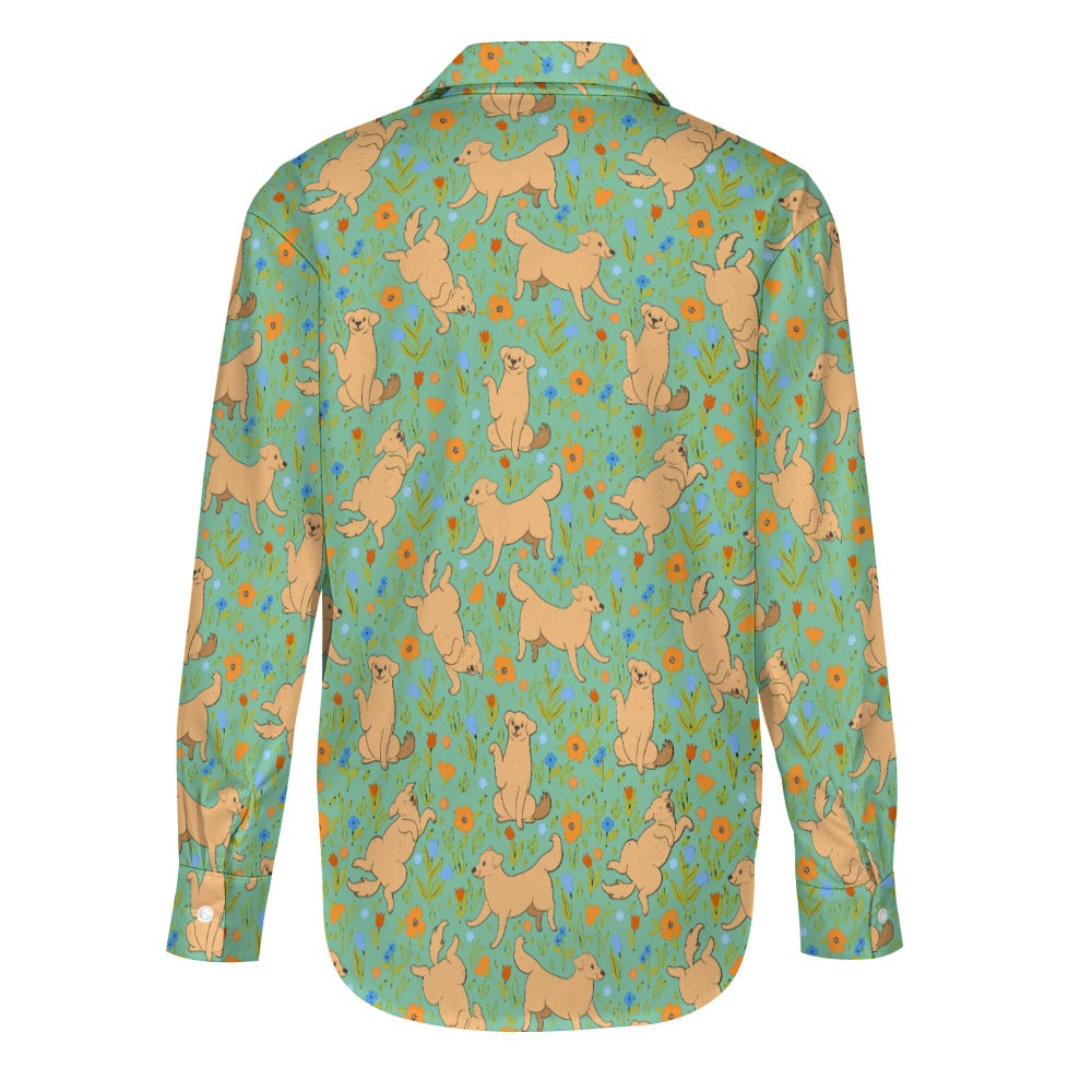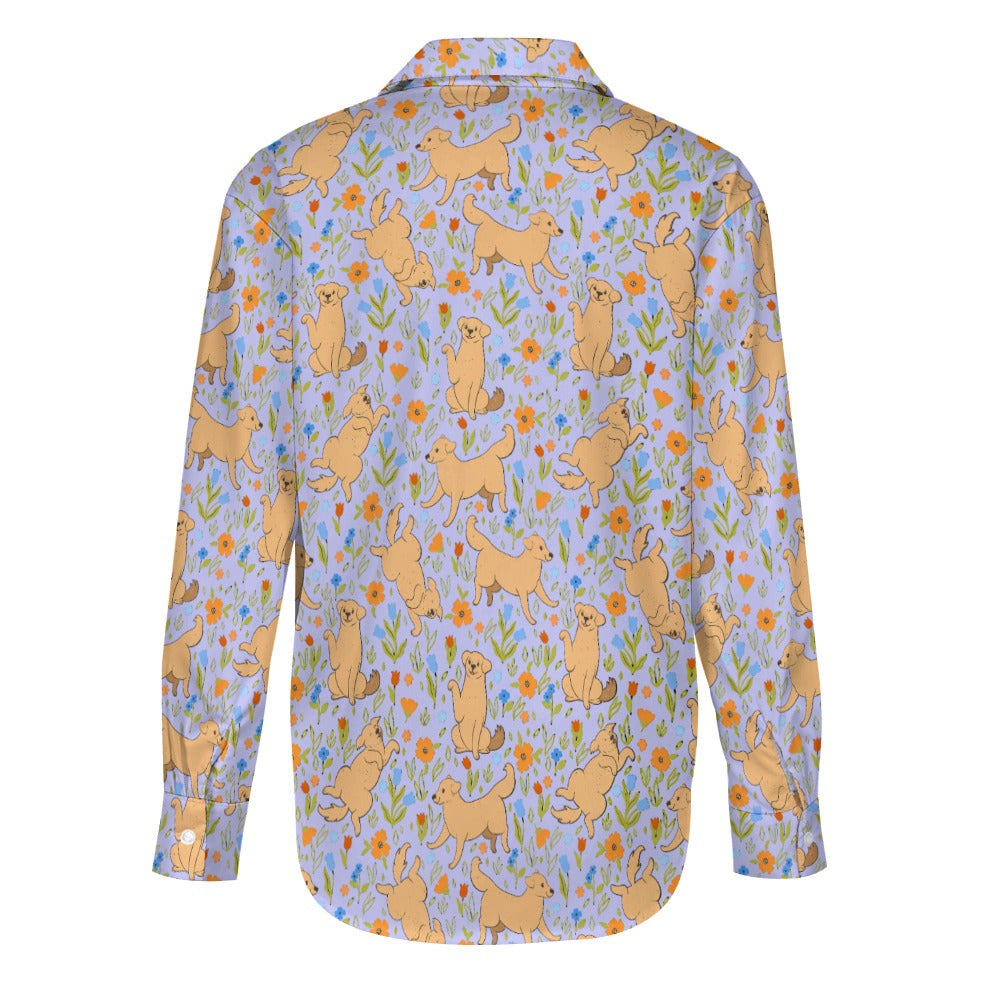 Celebrate your love for Labradors with our Flower Garden Yellow Labradors Women's Shirt, a delightful addition to any dog lover's wardrobe. This charming design features playful Labradors in a blooming meadow, capturing their joyful spirit and affectionate nature.