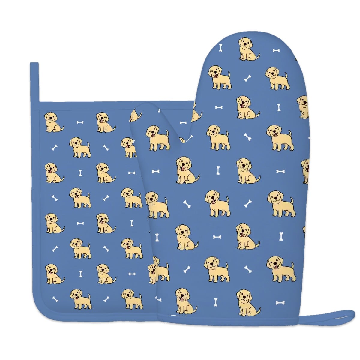 Happy Yellow Labrador Love Oven Mitts and Pot Holder Set