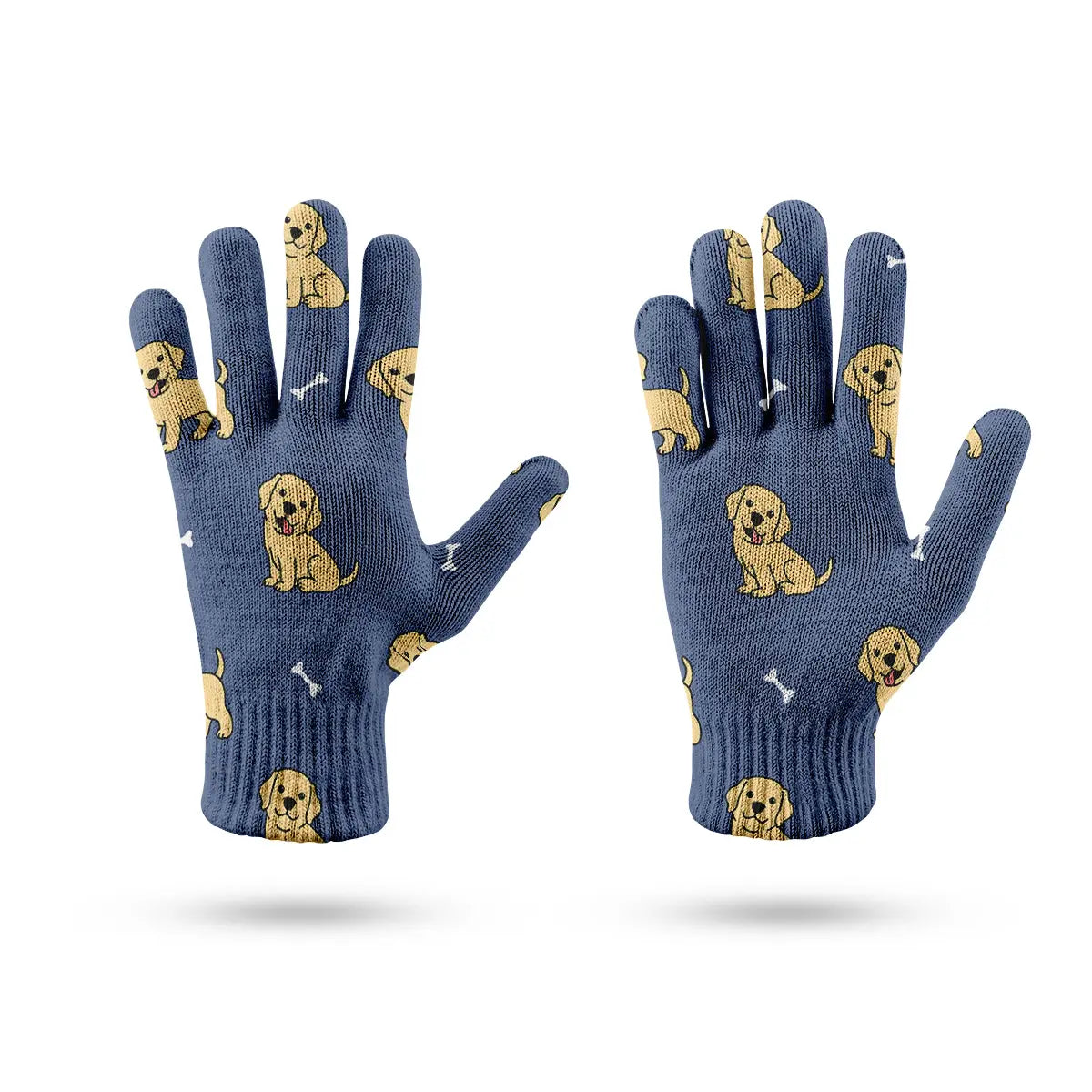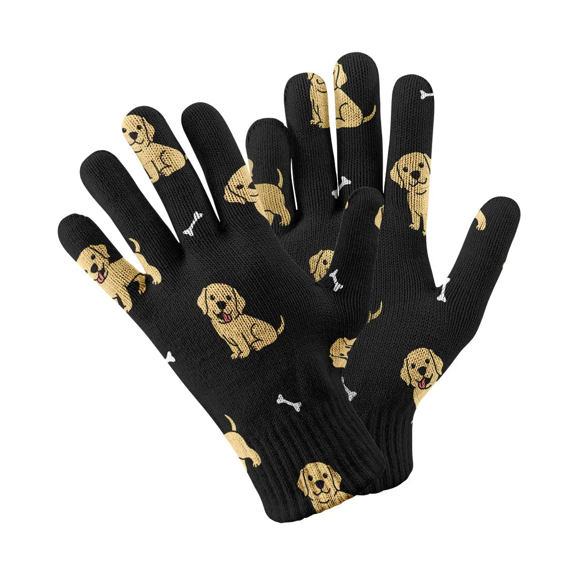 These gloves feature adorable Yellow Labradors with cheerful expressions and wagging tails, embodying their friendly and affectionate nature. Each Labrador is depicted in a playful stance, capturing the loyal and joyful personality that makes them beloved companions.