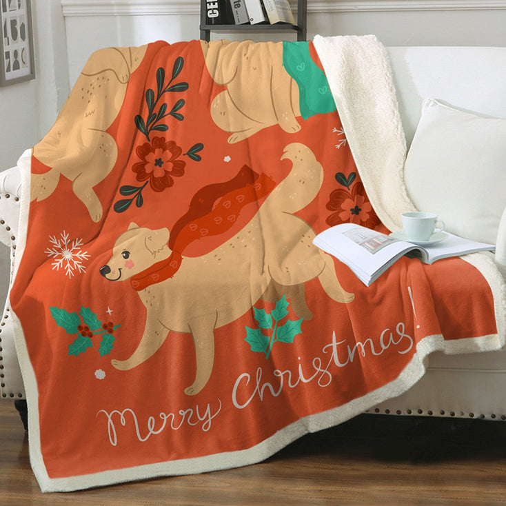 Merry Christmas Yellow Labradors Soft Warm Fleece Blanket