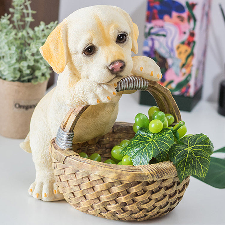 Made of high-quality resin, hand-painted, and featuring the most helpful yellow Labrador holding a straw weave design basket.
