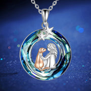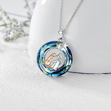 This pendant showcases a stunning Labrador silhouette against a vibrant blue backdrop, exuding a sense of energy and playfulness. Each necklace is meticulously silver-plated on zinc alloy, ensuring durability and a lustrous shine that beautifully complements the exquisite design.