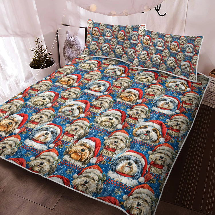 Wrap yourself in the festive warmth of the Holly Jolly Lhasa Apsos Christmas Quilt Blanket Bedding Set.