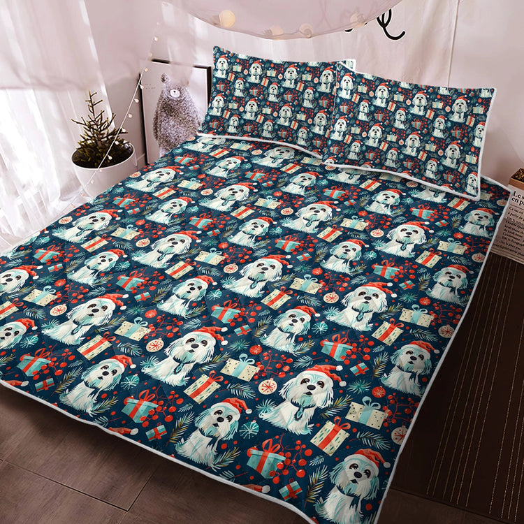 Celebrate the holidays with the Santa Paws Parade Lhasa Apso Christmas Quilt Blanket Bedding Set!