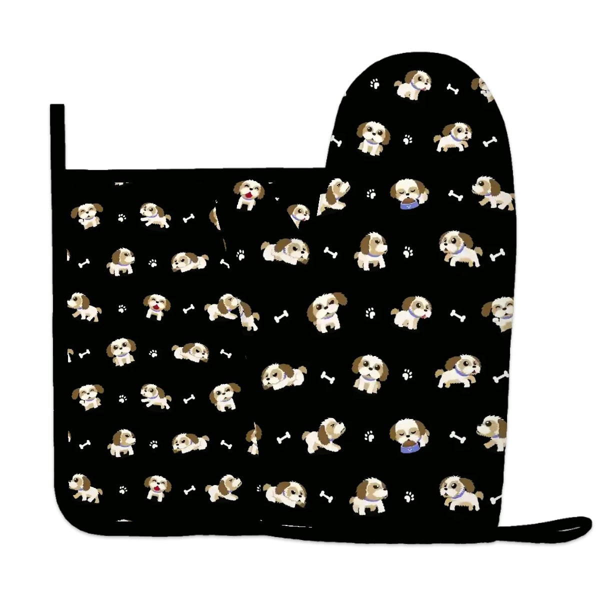 Cheerful Lhasa Apso Playtime Oven Mitts and Pot Holder Set