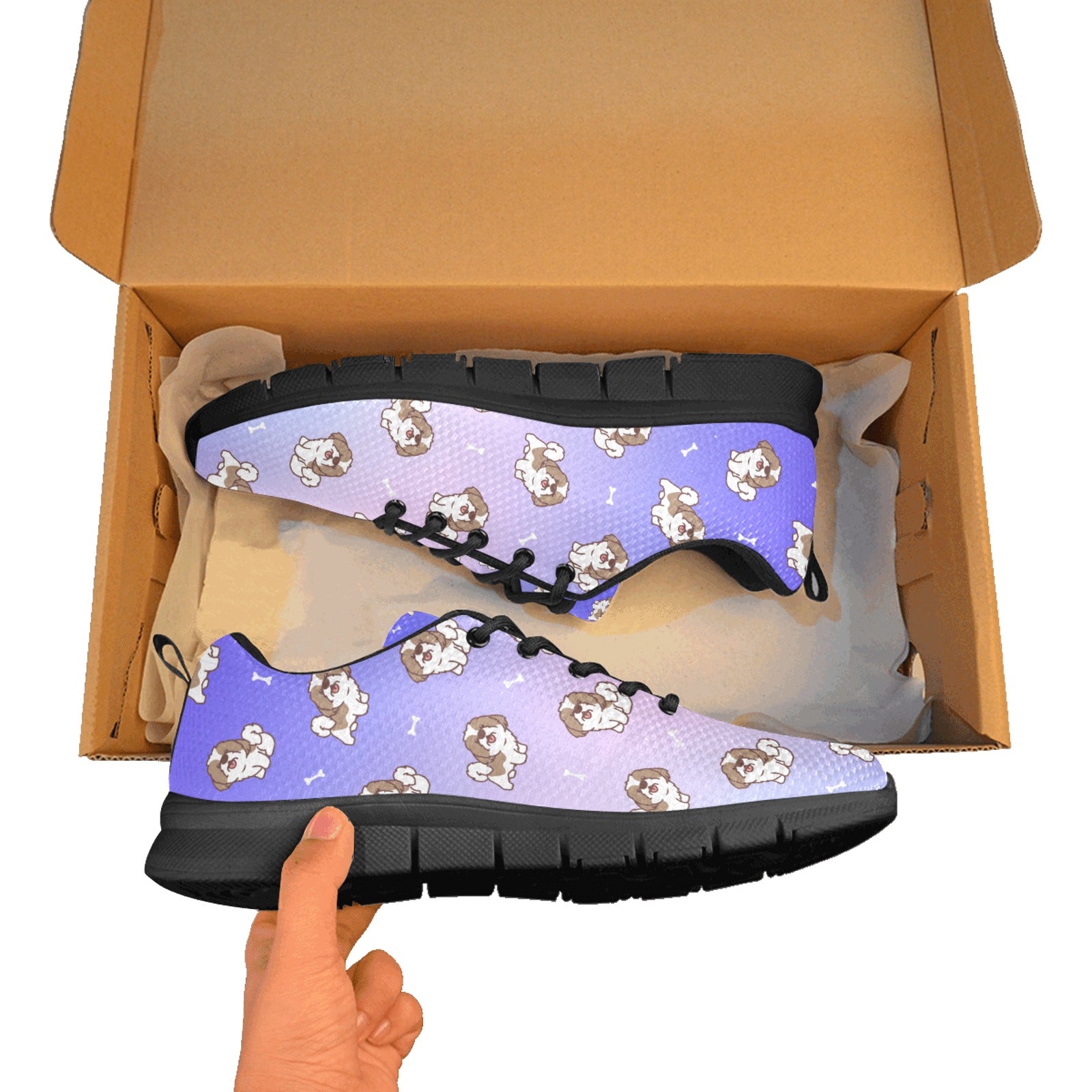 These delightful shoes feature an adorable design showcasing Lhasa Apso dogs in playful stances, bringing a whimsical touch to your everyday style.