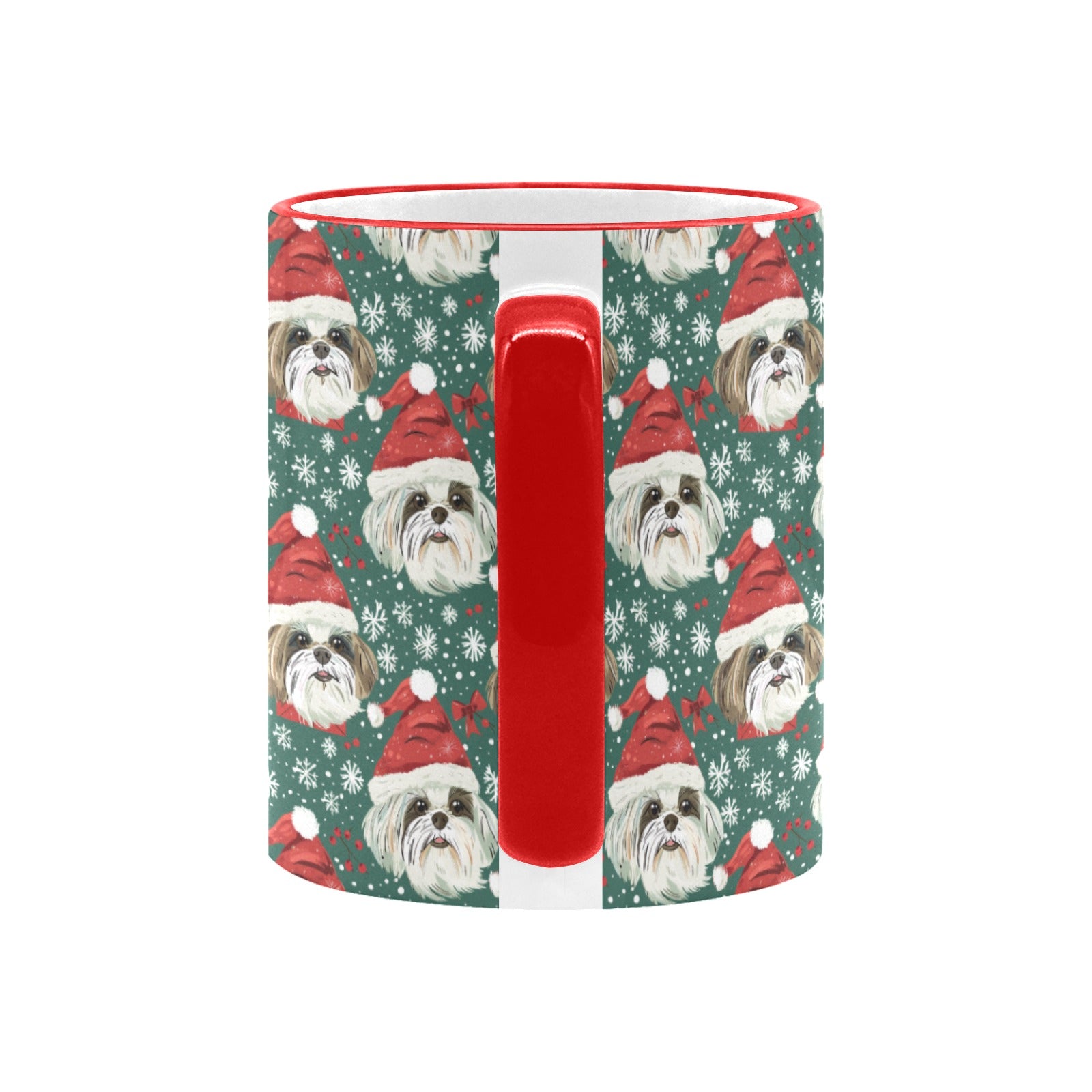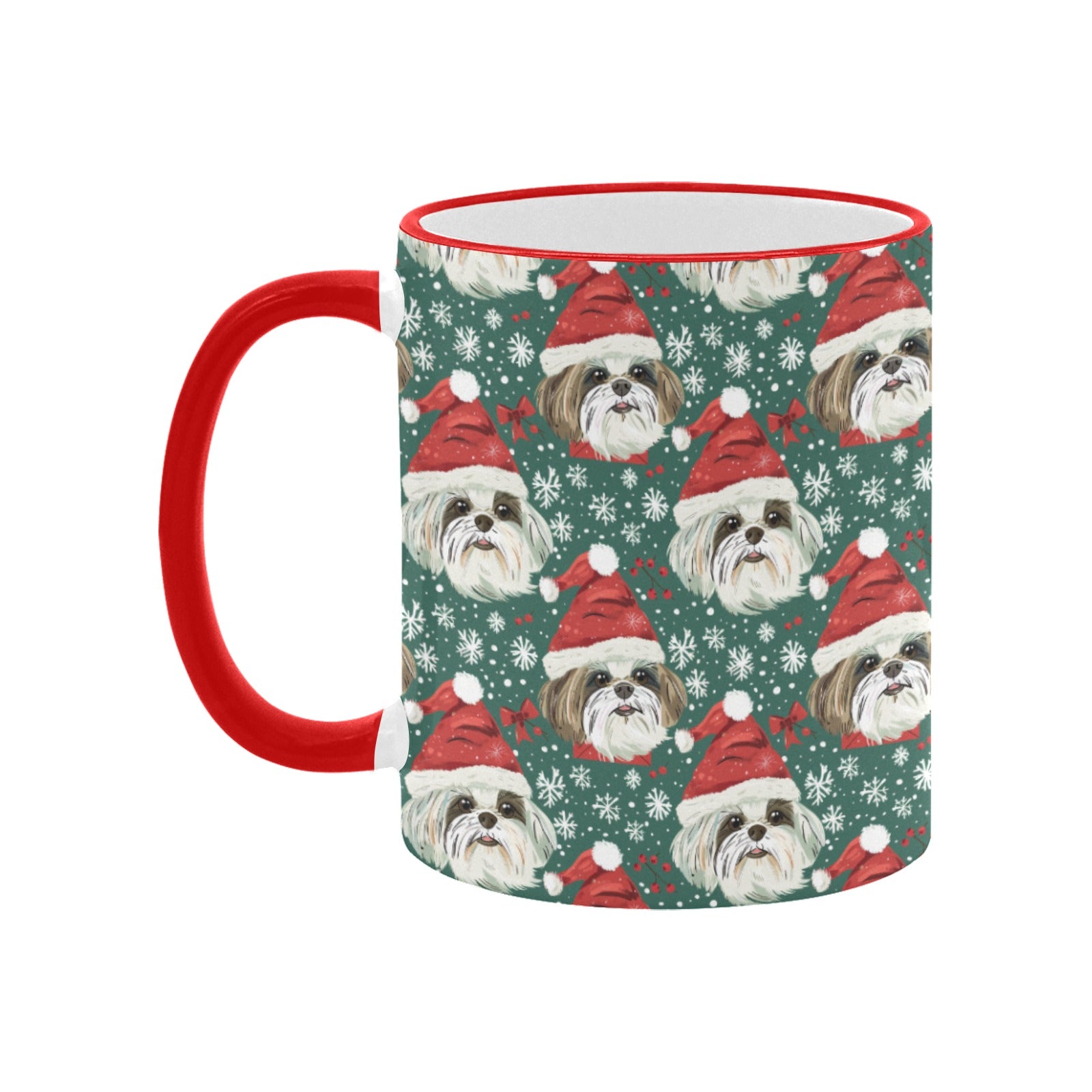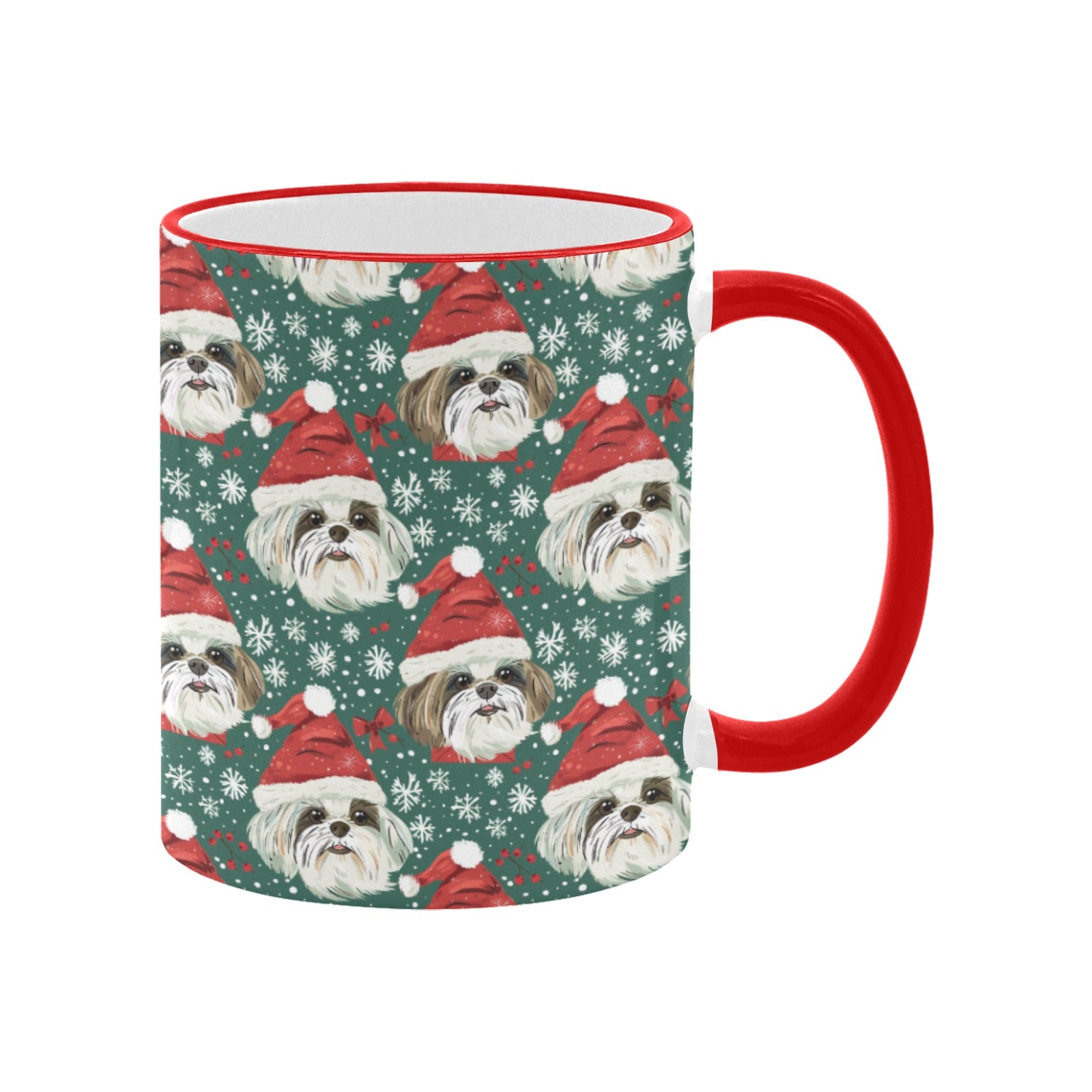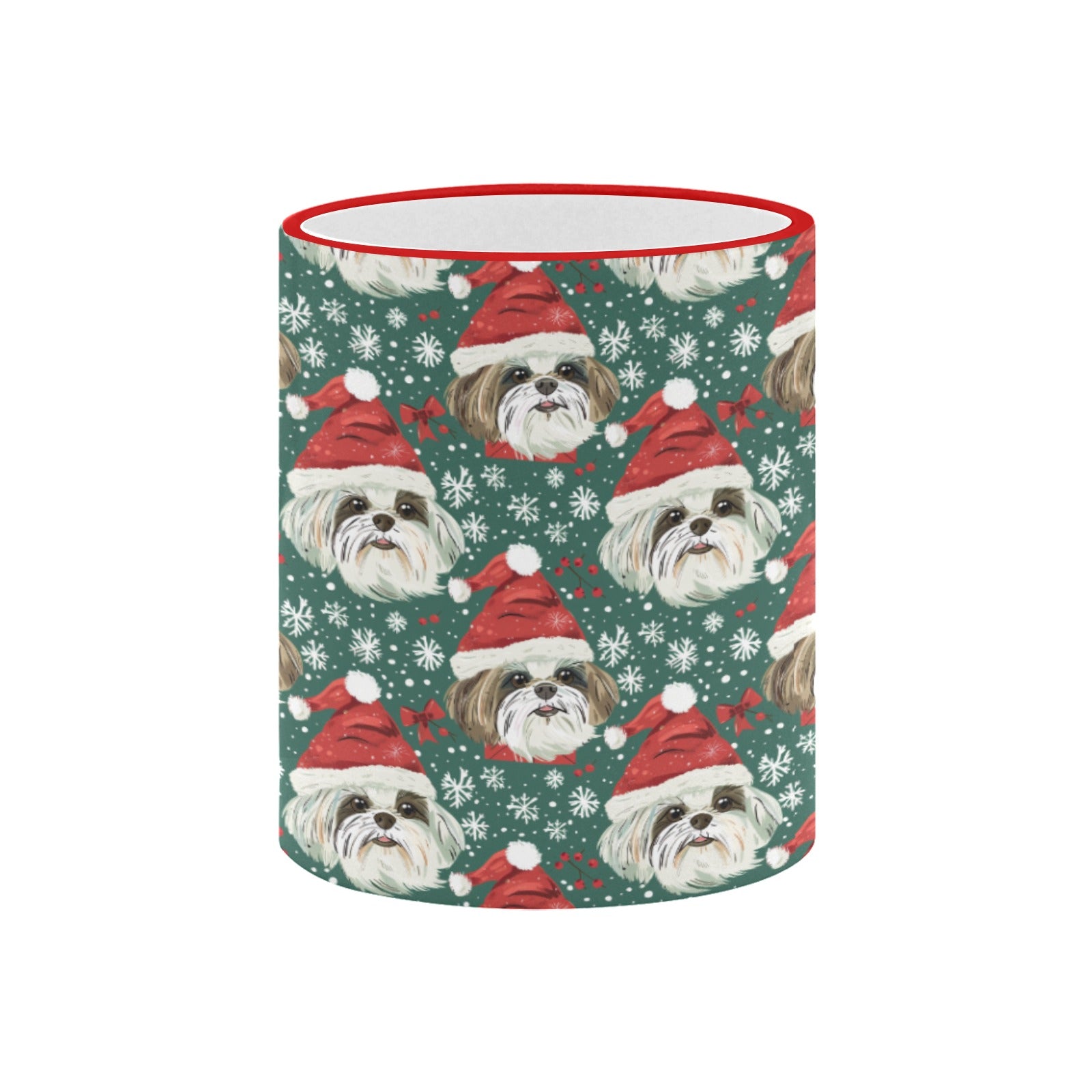 This delightful mug captures the essence of Christmas cheer, featuring adorable Lhasa Apsos in festive Santa hats.