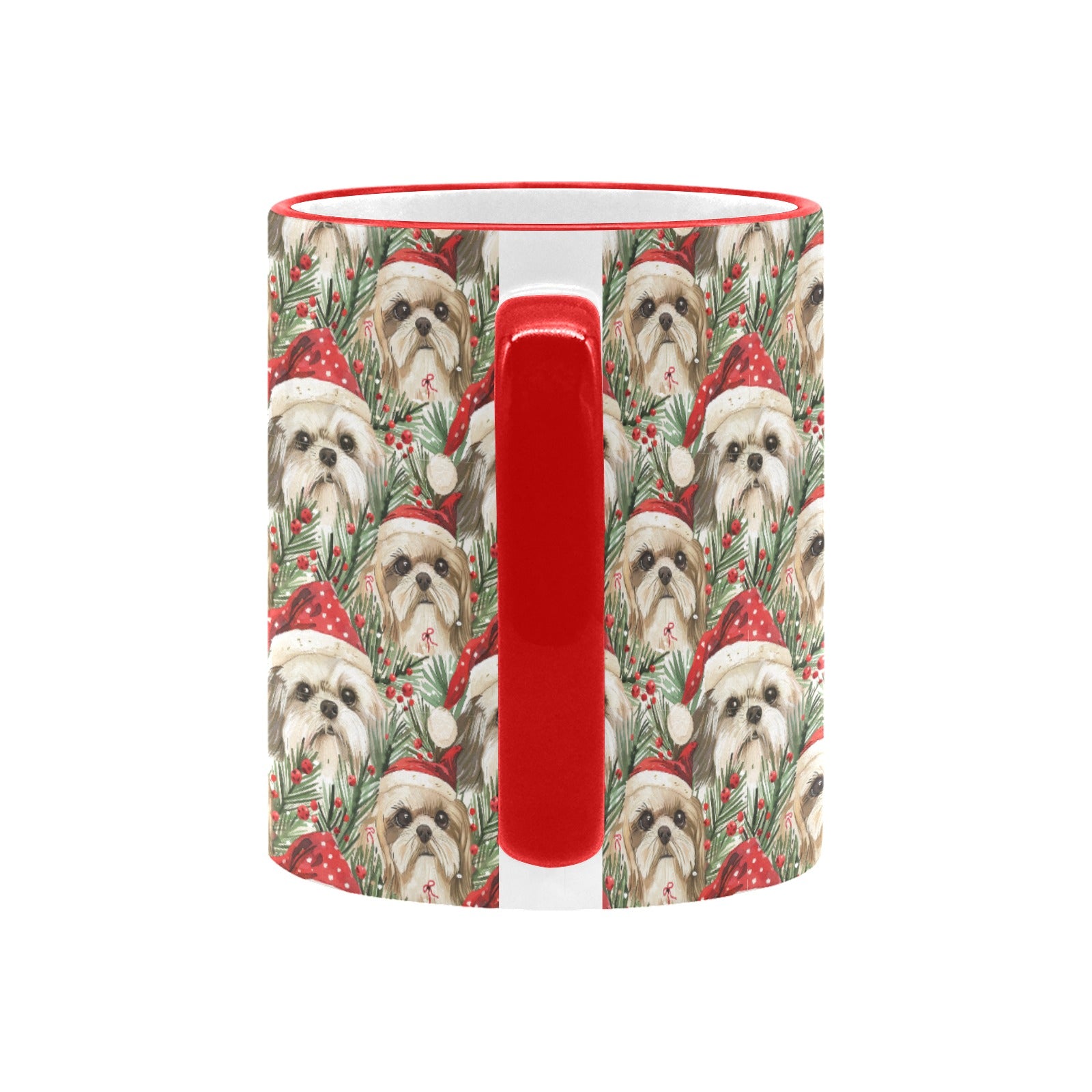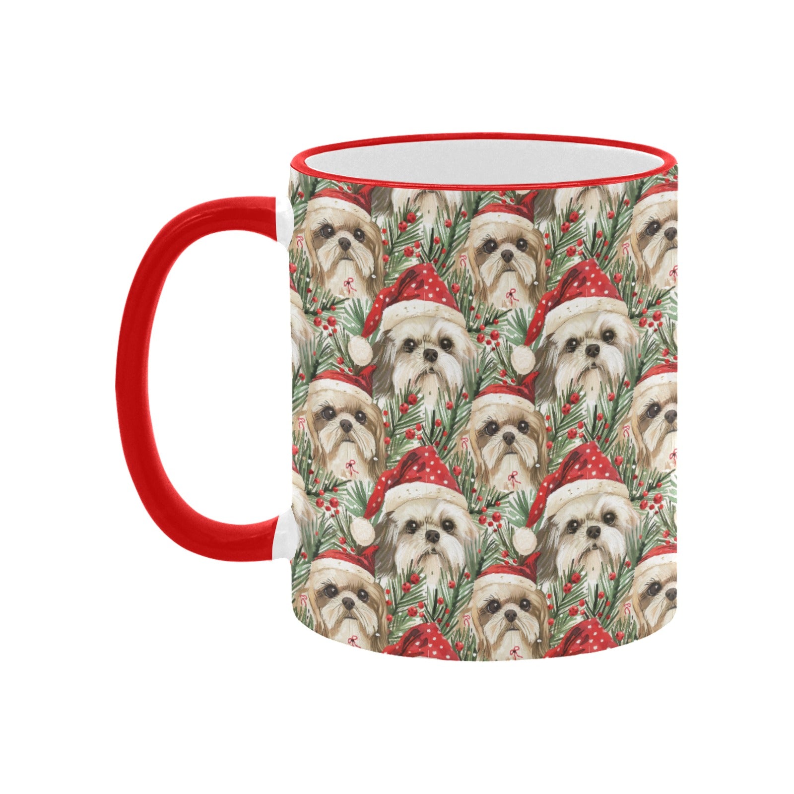 This charming mug features delightful Lhasa Apsos adorned in festive hats, bringing warmth and joy to your daily coffee or tea ritual.