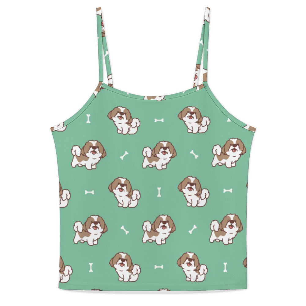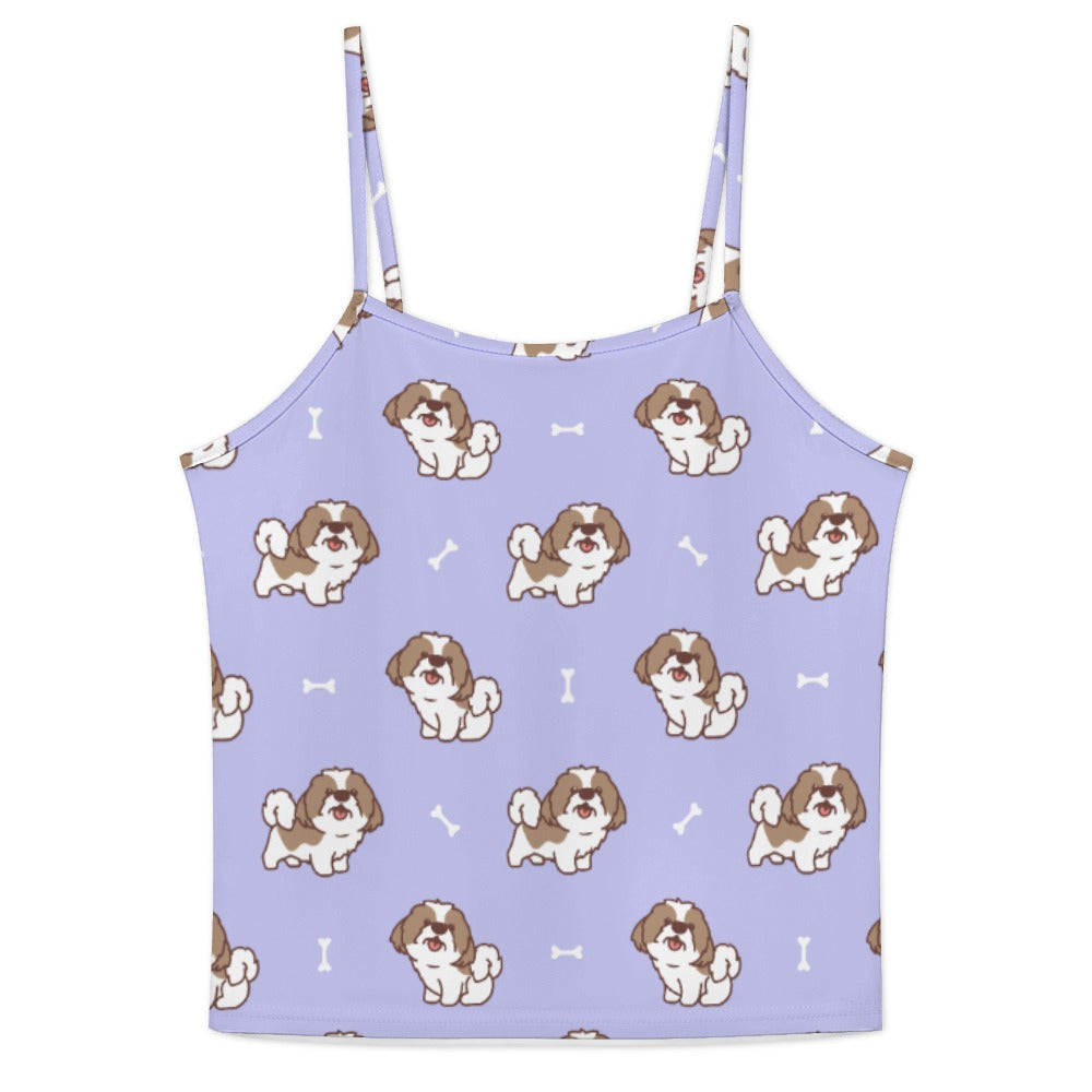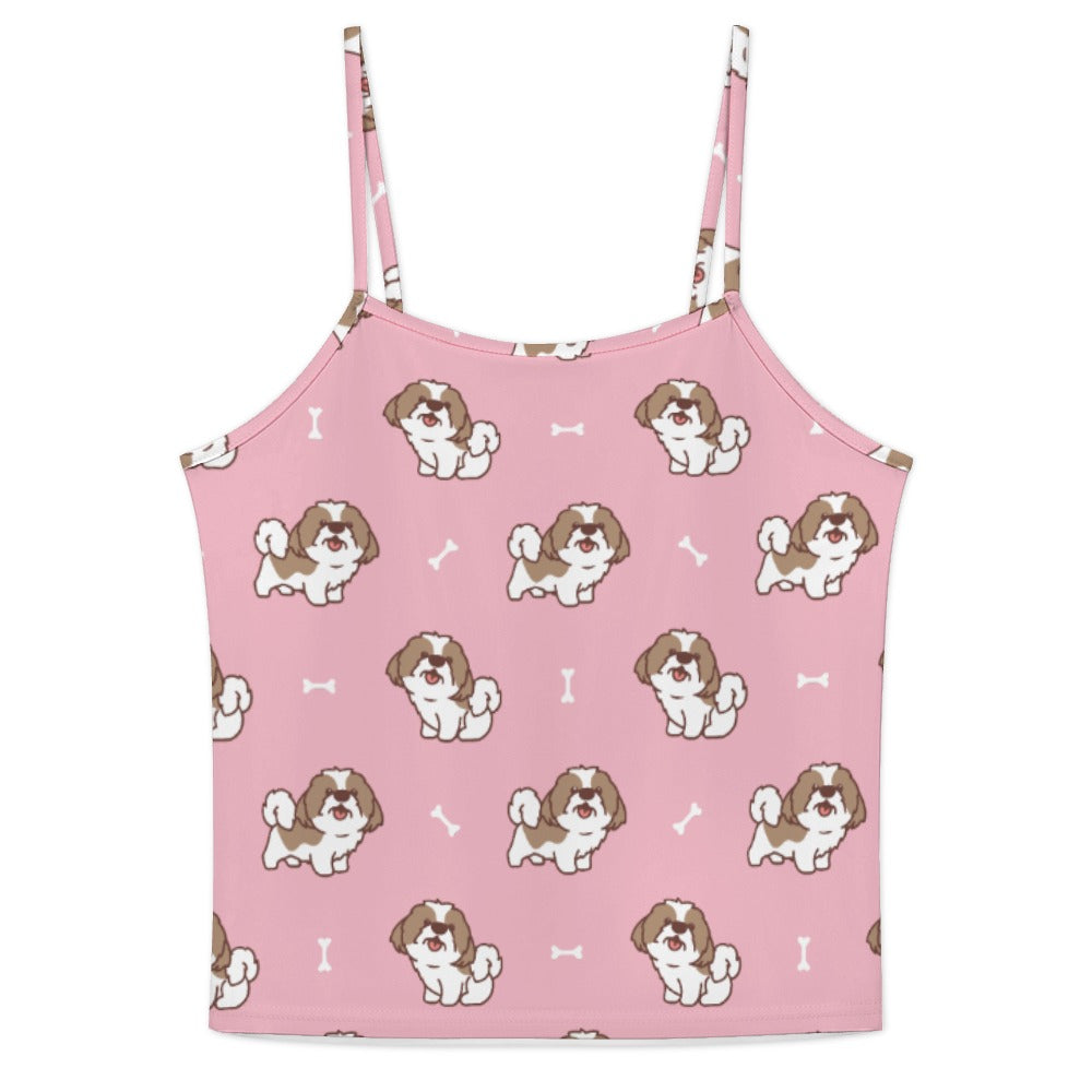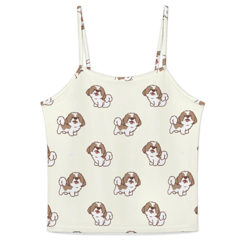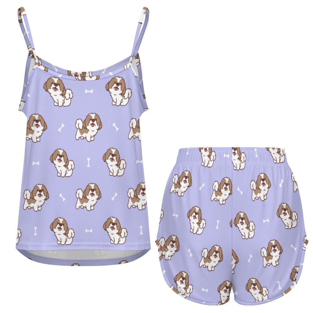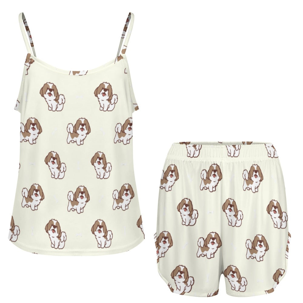 Celebrate your love for Shih Tzus with our Smiling Shih Tzu Love Women's Cami and Shorts Pajama Set! This charming set features delightful Shih Tzu illustrations, each radiating joy, complemented by playful bone elements that add a lively touch.