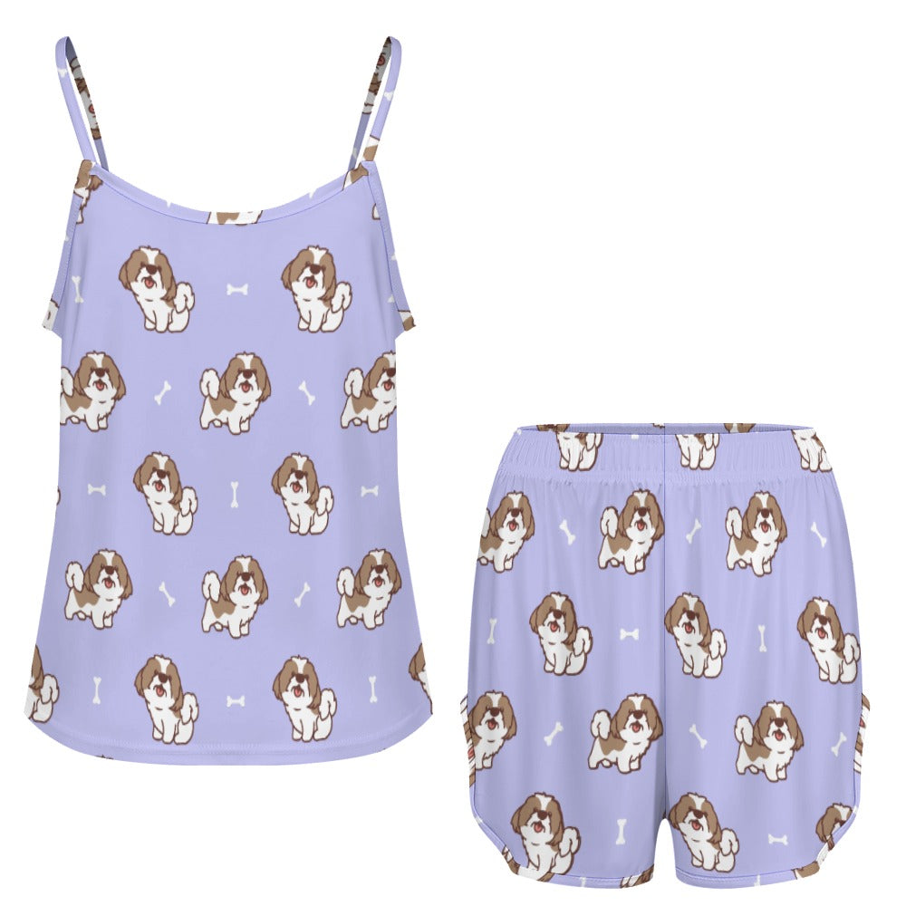 Smiling Lhasa Apso Love Women's Cami and Shorts Pajama Set-23
