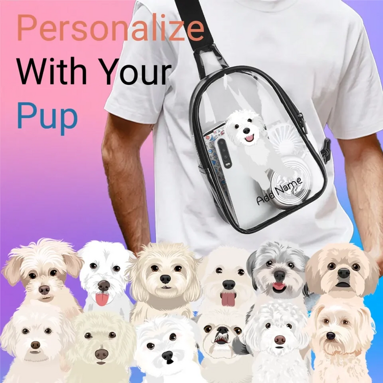 Introducing the Personalized Maltese Love Unisex Transparent Sling Bag, a must-have for Maltese enthusiasts. This bag is more than just an accessory; it's a statement of affection for your beloved pet.