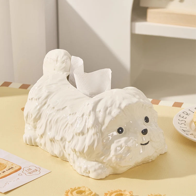 Play Pose Maltese Ceramic Tissue Box Statue
