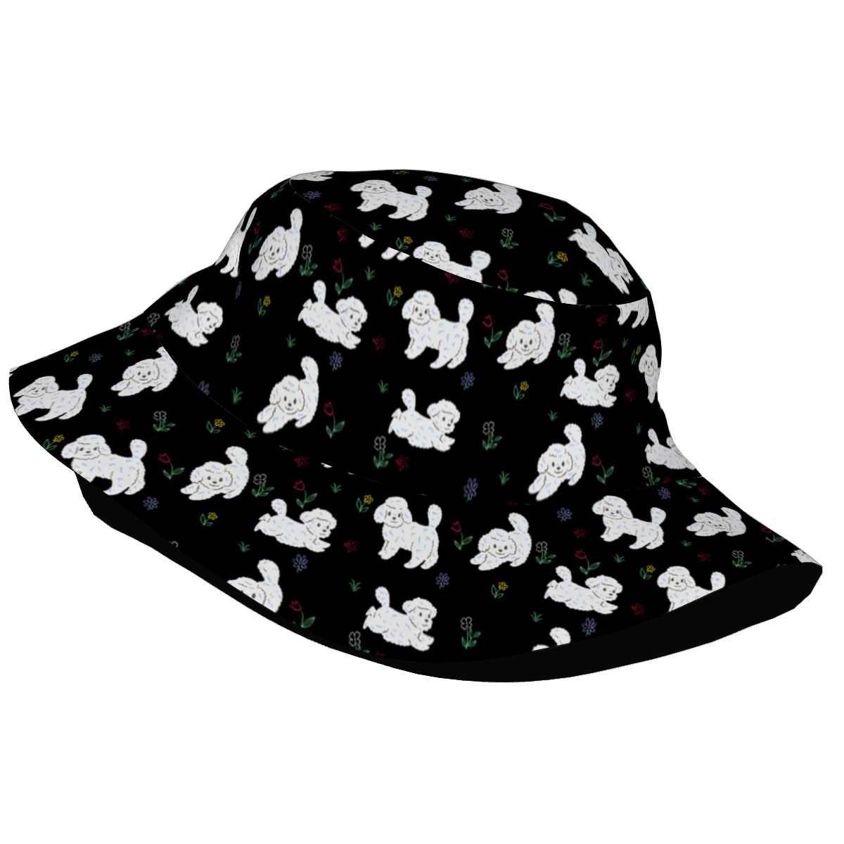 Playful Maltese in a Garden Stroll Bucket Hat-Hats & Caps-Accessories,Dog Dad Gifts,Dog Mom Gifts,Hats,Maltese-Midnight Black-One Size-17