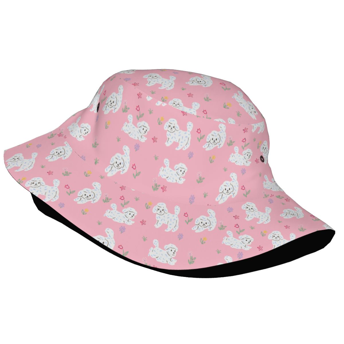 Playful Maltese in a Garden Stroll Bucket Hat-Hats & Caps-Accessories,Dog Dad Gifts,Dog Mom Gifts,Hats,Maltese-Light Pink-One Size-33